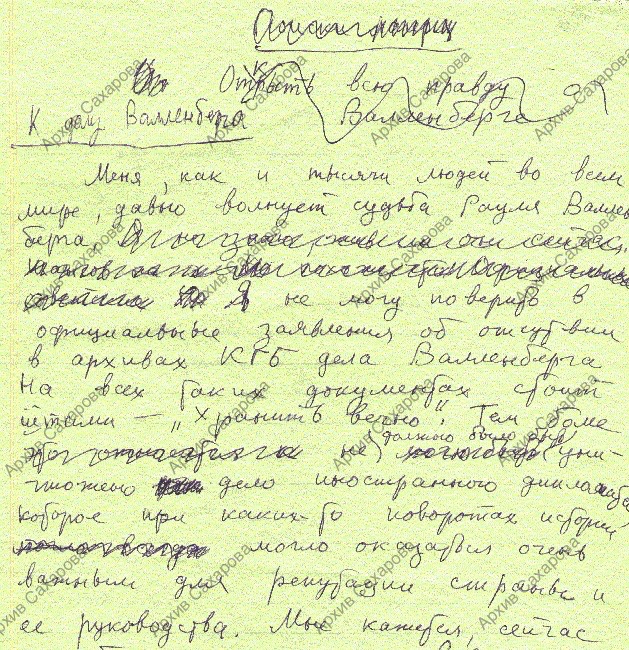 Отклик на статью посла СССР в Швеции Б.Панкина "Сестра Рауля Валленберга поедет в Москву" в газ. "Московские новости", N35 от 27 авг.1989 г.