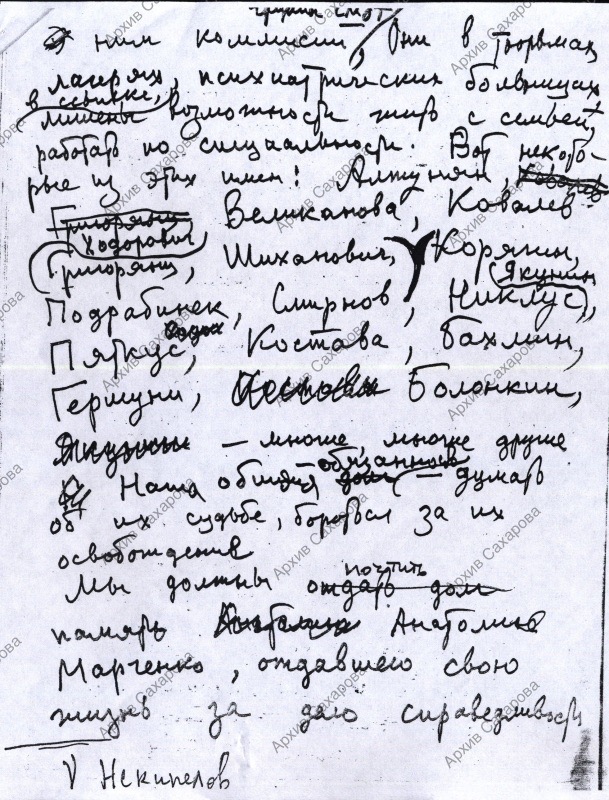 Алтунян_Г.О., Великанова_Т.М., Ковалев_С.А., Ходорович_С.Д., Григорьянц_С.И., Смирнов_А.О., Шиханович_Ю.А., Корягин_А.И., Подрабинек, Костава_М.И., Бахмин_В.И., Гершуни_В.Л., Никлус_М.Ю., Некипелов_В.А., Якунин_Г.П., Пяткус_В., Болонкин_А.А., Марченко_А.Т.