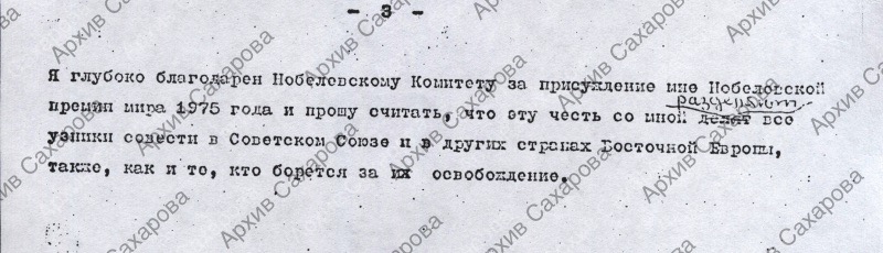 1) текст выступления Сахаров прочитал 24 ноября по телефону Е.Г.Боннэр, находившейся в Италии;