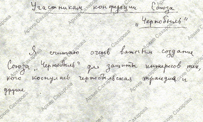 Обращение к участникам конференции Союза "Чернобыль"