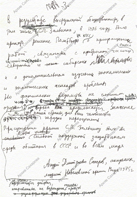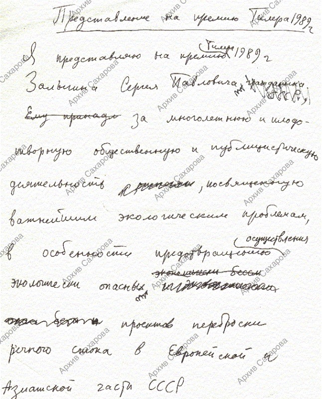 "Представление на премию Тилера 1989 г." С.П.Залыгина