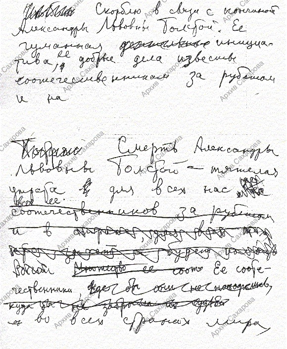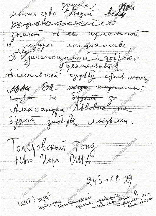 2) отправлено телеграммой из Сухуми (со слов Е.Г.Боннэр)