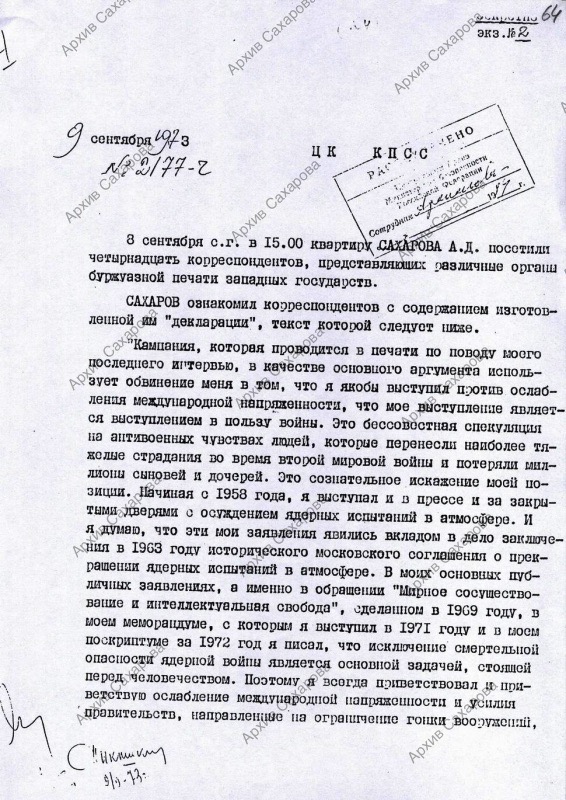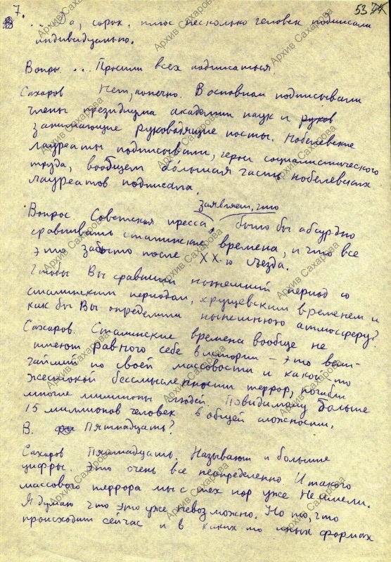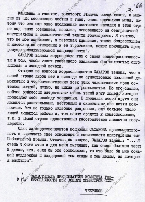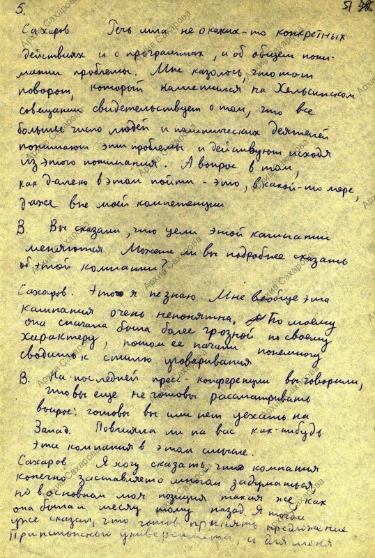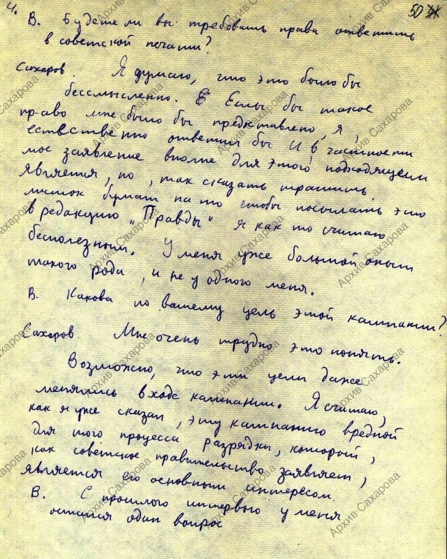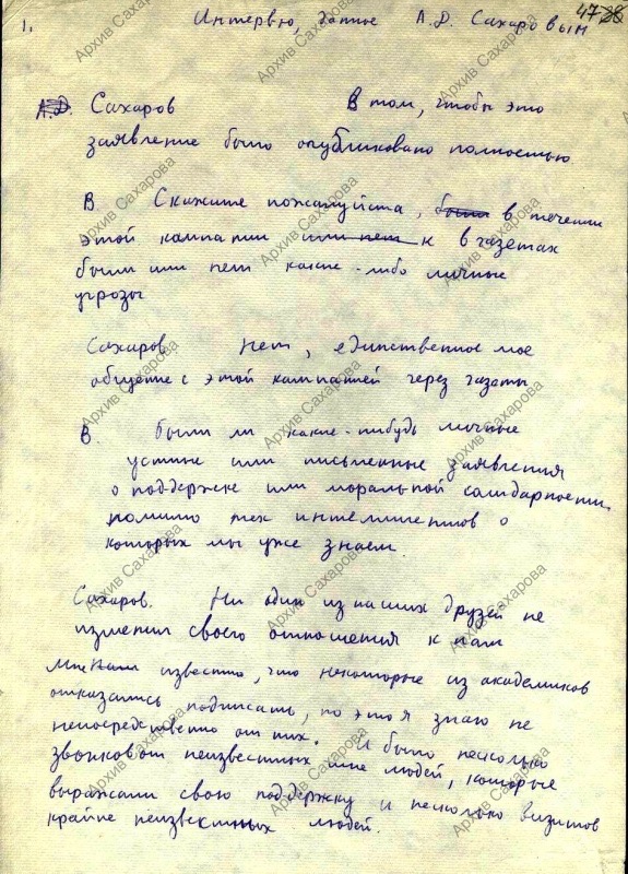 "Интервью, данное А.Д.Сахаровым" на пресс-конференции в связи с газетной травлей против него